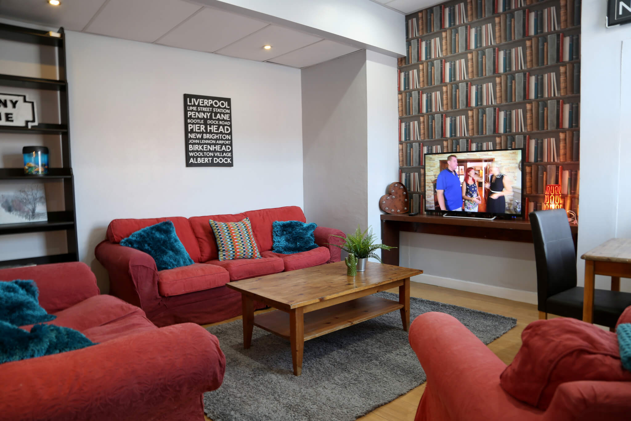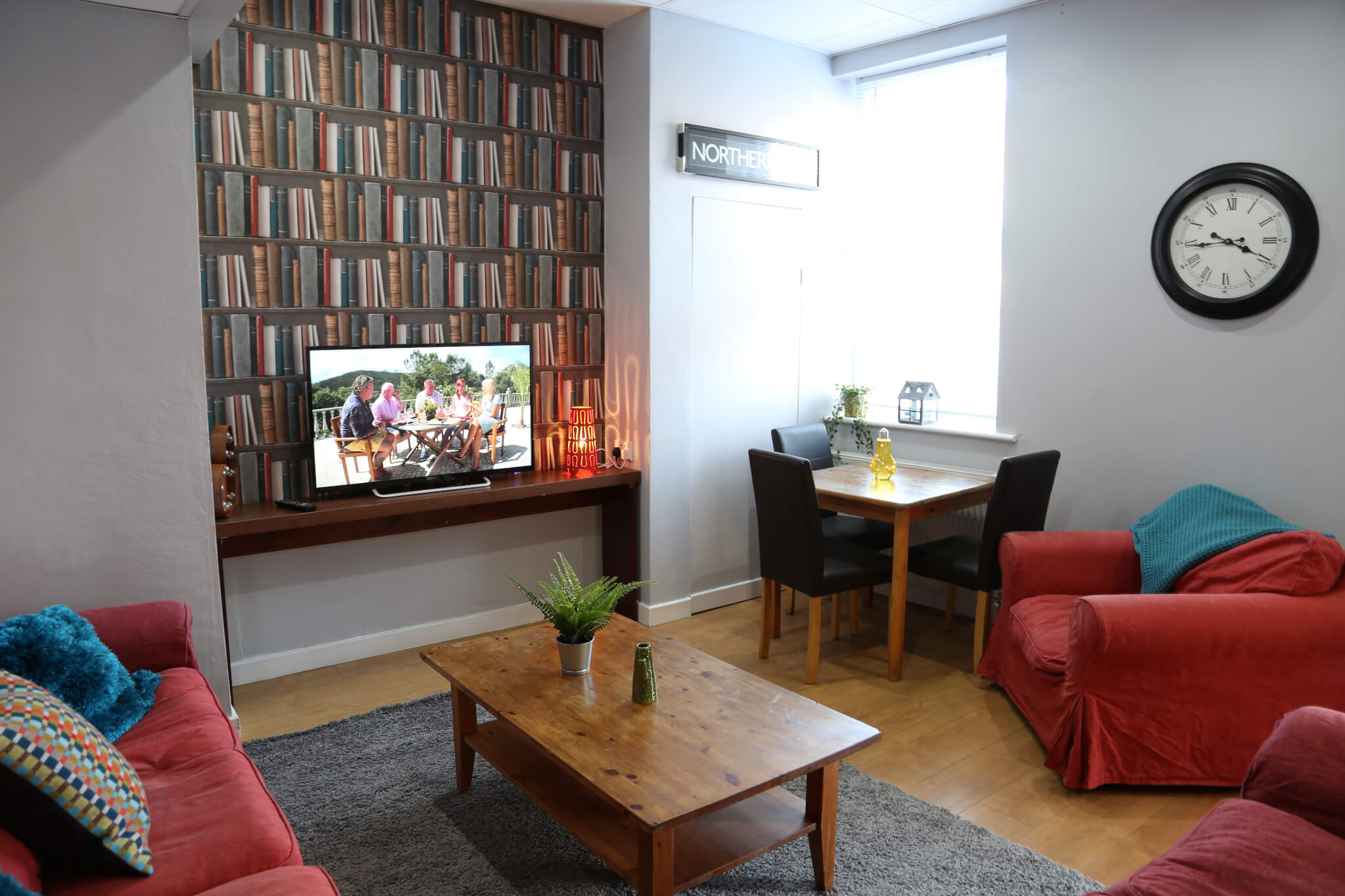 Nicely decorated with Large living room with comfortable sitting and Big 50 inch smart TV.